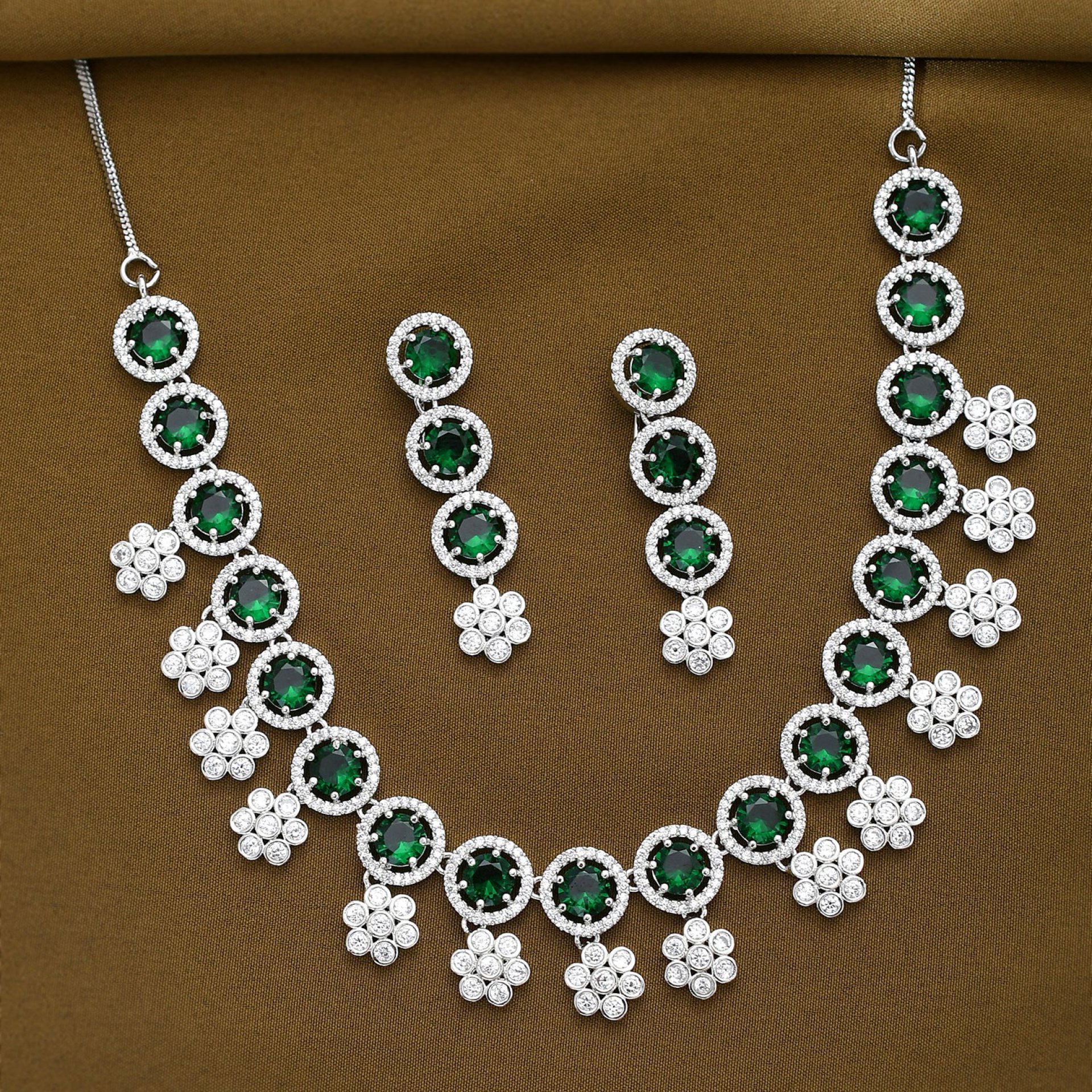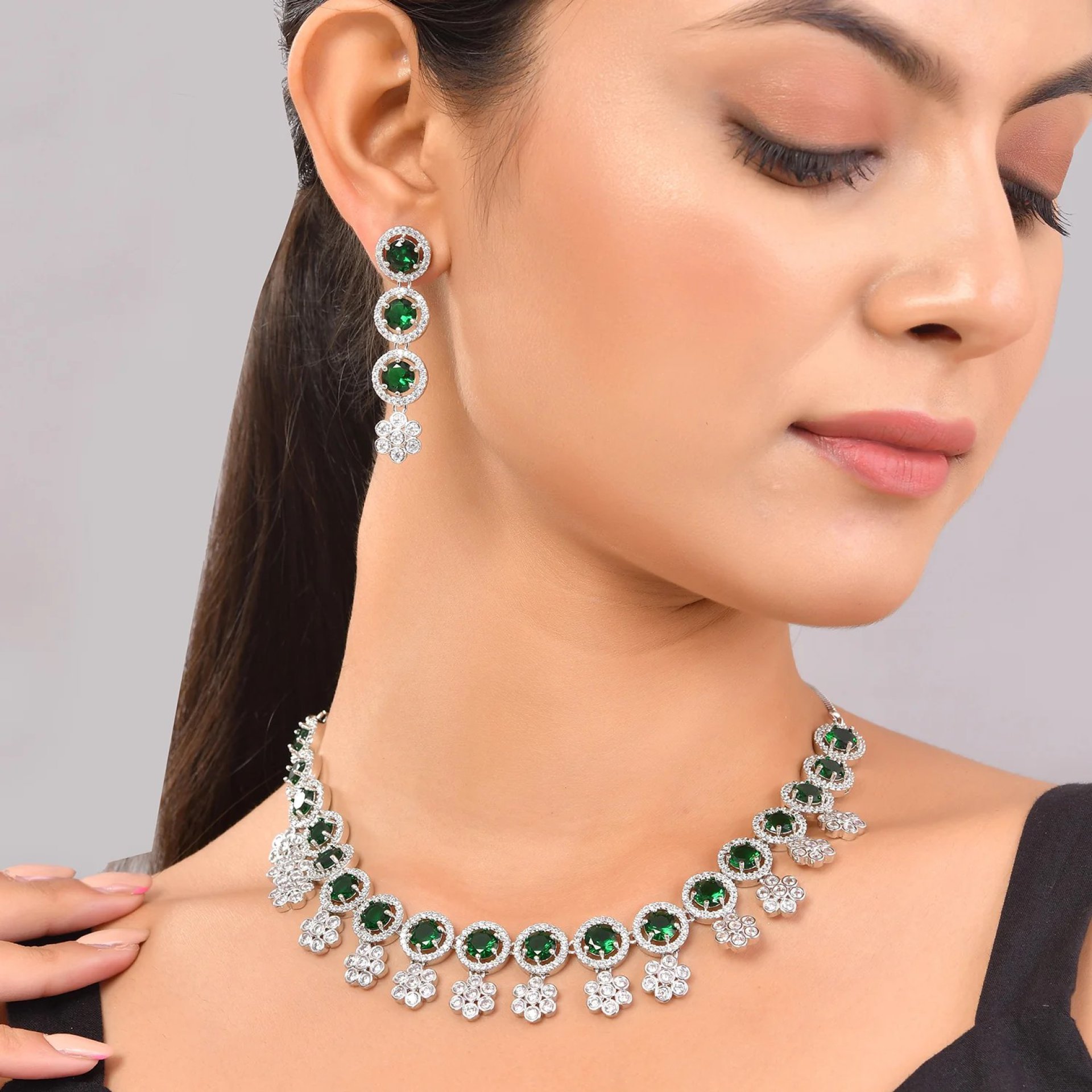 The Sparkling Elegance Necklace Set is crafted to bring unmatched brilliance to your jewelry collection. Featuring a beautifully designed necklace adorned with shimmering stones, this set exudes sophistication and style. The matching earrings complete the look, making it the perfect accessory for sarees, gowns, or contemporary outfits. Lightweight yet luxurious, it’s designed for comfort while ensuring you stand out on every occasion. Whether for a bridal ensemble, evening gala, or festive gathering, this set is a must-have for women who love elegance with sparkle.